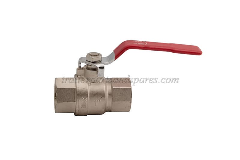 Lever valve with 1 inch female BSP threaded connections at each end. BSP (British Standard Pipe Thread) sizes don’t match up with what you would measure using a ruler. Have a look at the BSPT page for more information about how plumbing threads are measured.