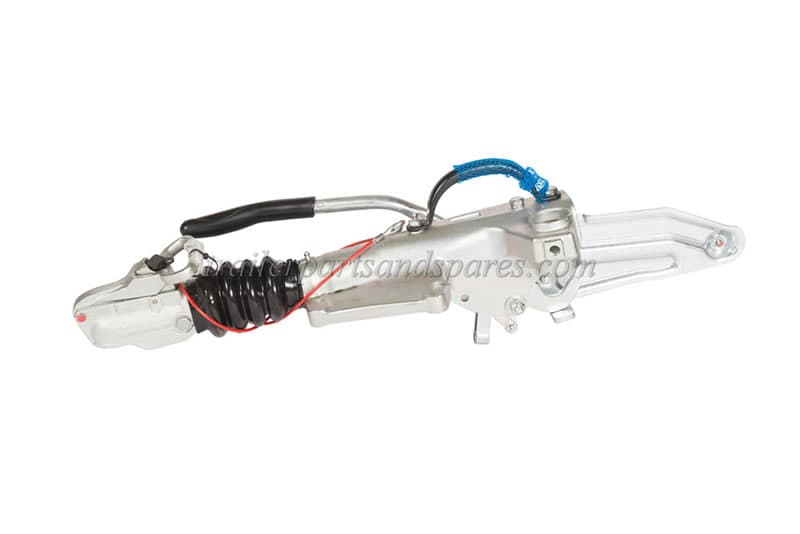 Knott Avonride KFG20 cast steel, delta coupling, 2000 kg. capacity, Auto Reverse, complete with coupling lock. Front mounting bolts centres=100mm., rear=180mm. Uses 48mm. dia. jockey wheels.