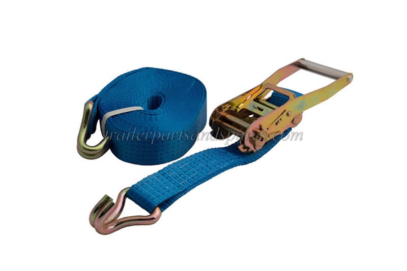 Heavy duty blue load binding ratchet strap, 10M long x 50mm wide with claw hooks, 5000kg capacity